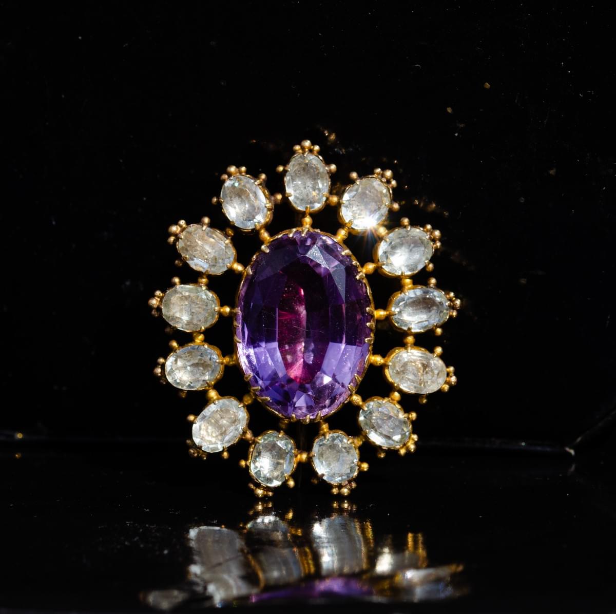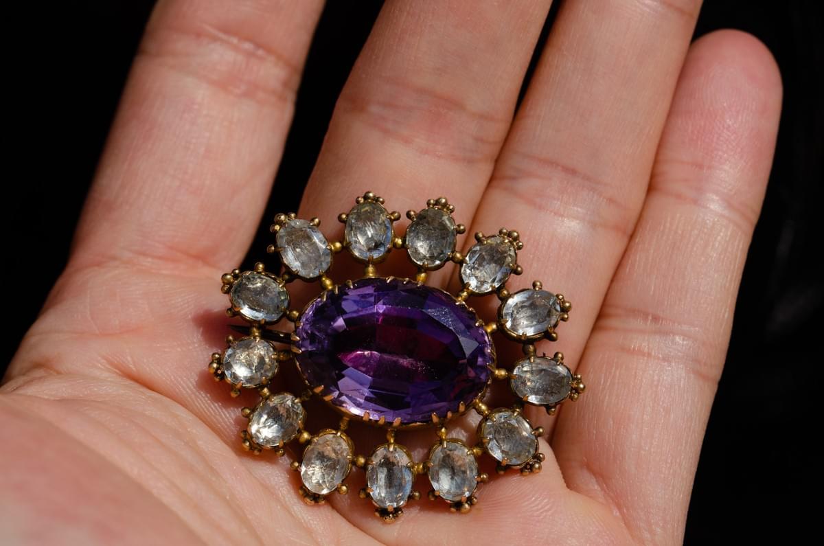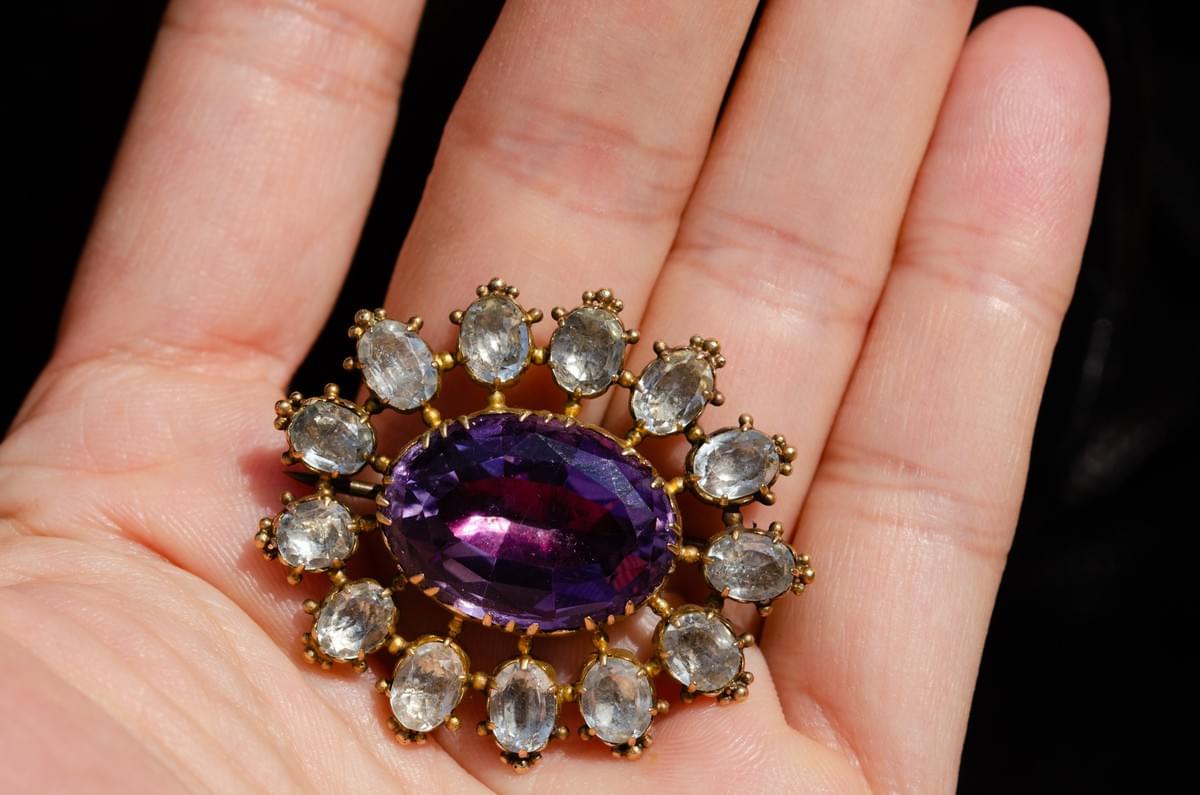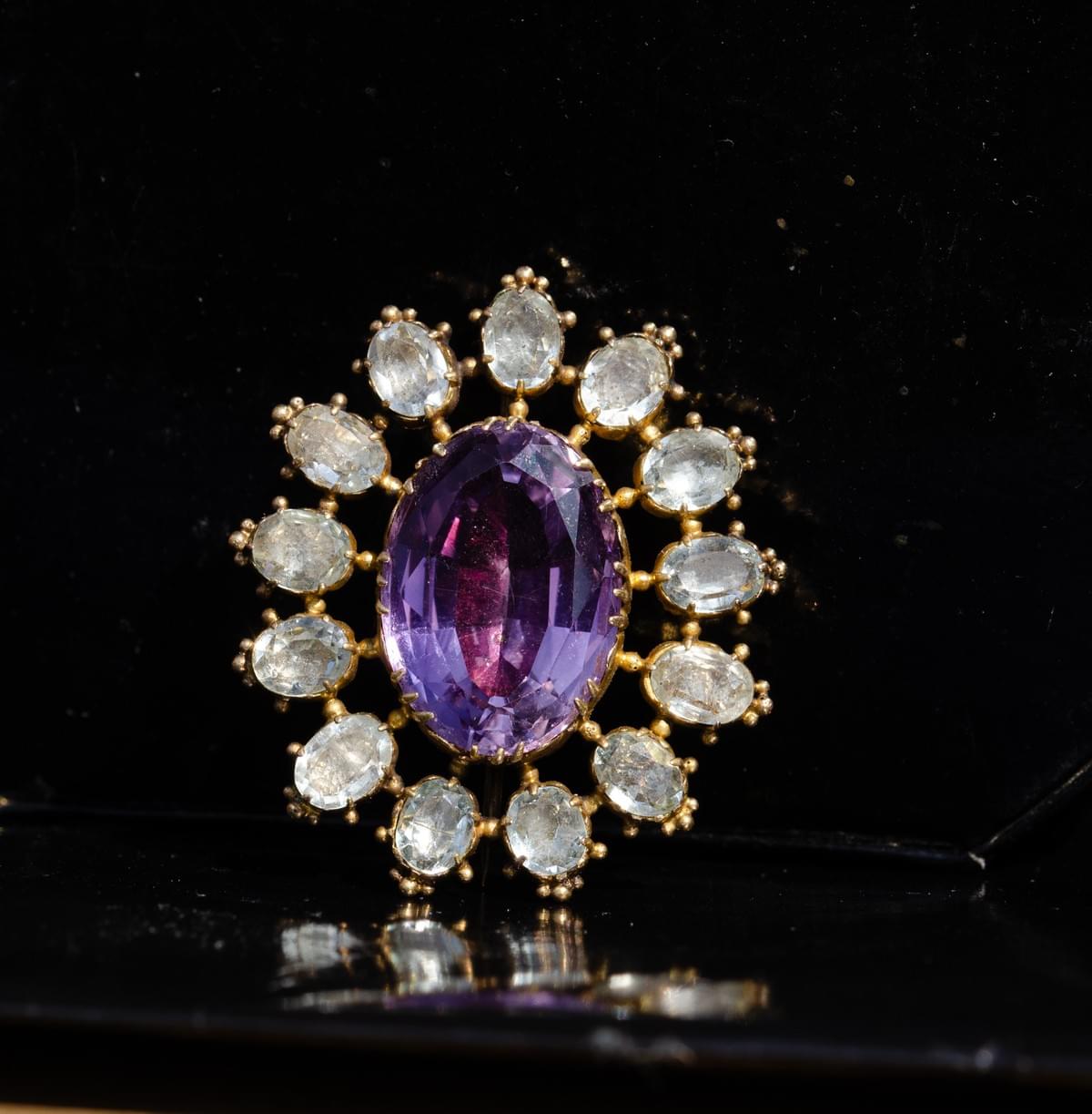 Amethyst and aquamarine brooch