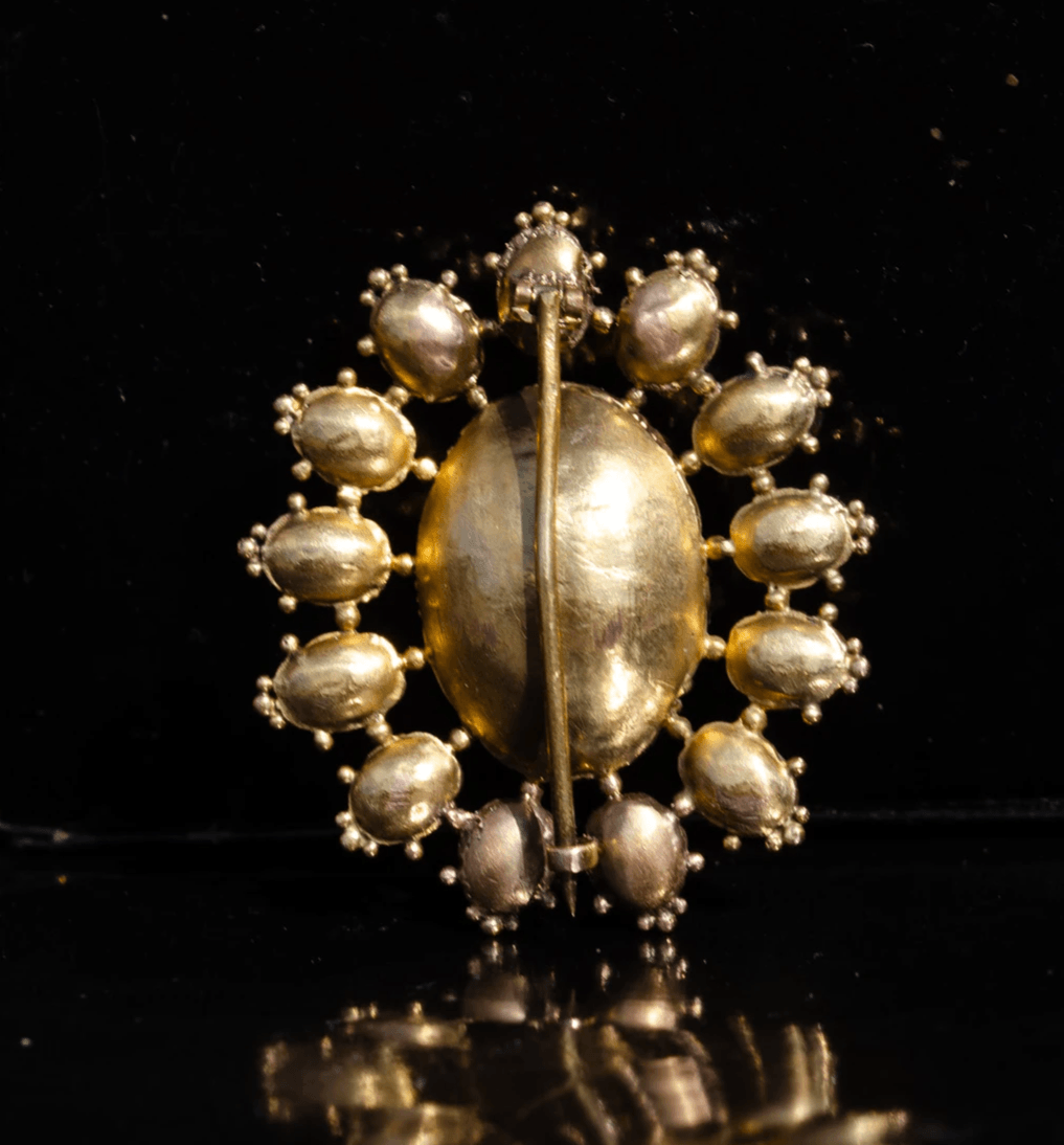 The brooch measuring 38mm x 30mm.