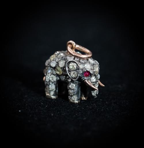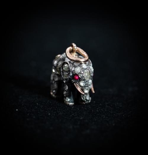 Fabergé Silver and Gold Elephant Pendant by Erik August Kollin, Set with Old‑Cut Diamonds and Ruby