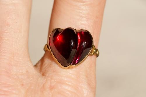 garnet double heart ring